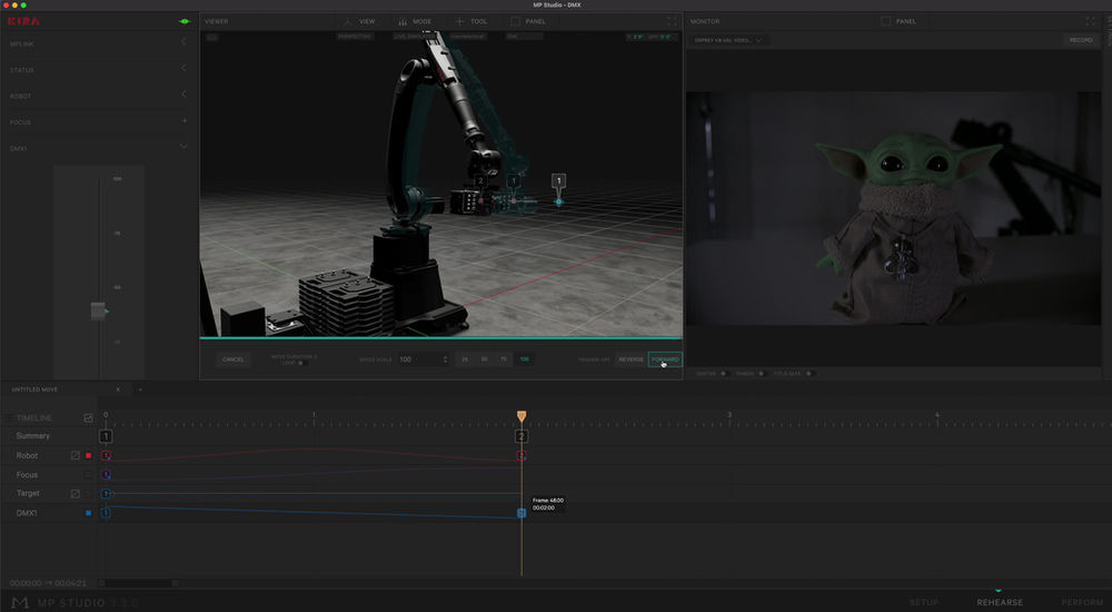 Control your lighting and trigger effects with DMX integration in MP Studio. Sync motion and lighting cues, automate effects, and enhance your productions with precise, real-time control over DMX-compatible fixtures. Perfect for cinematic lighting, live events, and dynamic visual storytelling.